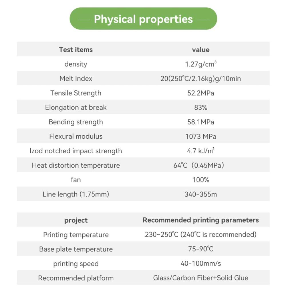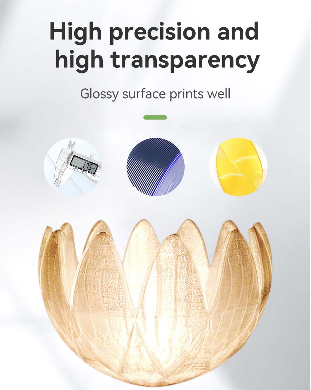 PETG FilamentiOdlična čistost, prenos svetlobe in visoki sijaj. Visoka žilavost in odpornost na udarce. Kemična odpornost, vodoodporen, dobra stabilnost, brez pokanja in upogibanja. Prijazno do okolja. Nestrupen in brez vonjav.