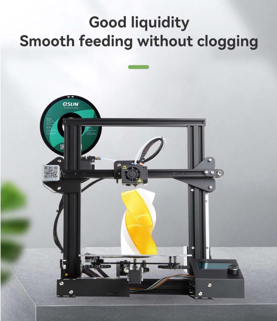 【Vakuumsko zaprta embalaža Neto teža: 1 kg. Filament eSUN je na voljo v zaprti vakuumski vrečki s sušilno vrečko, da ostane suh brez prahu in tujkov, kar prepreči zagozdenje šob in enakomerno ekstruzijo.